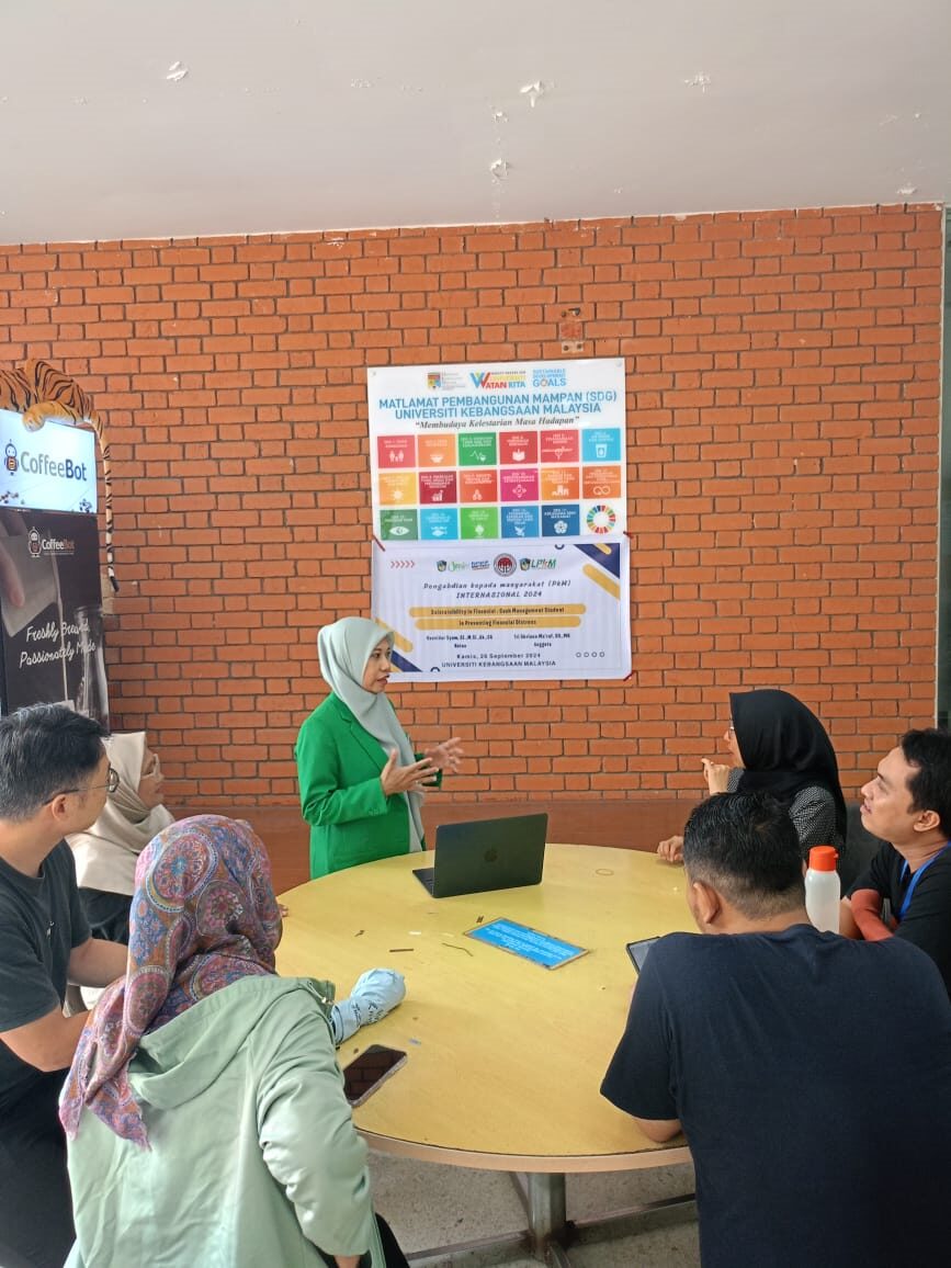 Lima dosen dari Fakultas Ekonomi dan Bisnis Universitas Muslim Indonesia (UMI) melaksanakan kegiatan pengabdian masyarakat di Universiti Kebangsaan Malaysia (UKM). Kegiatan ini bertujuan untuk memberikan edukasi kepada mahasiswa UKM terkait pengelolaan keuangan yang berkelanjutan dalam upaya mencegah krisis keuangan pribadi, dimana pelaksanaan PKM ini dilaksanakan dengan 2 rangkaian kegiatan yaitu pelaksanaan dengan online pada Senin 23 September 2024 dan secara offline pada Kamis 26 September 2024 yang dipusatkan di Perpustakaan Datuk Tun Seri Lanang UKM.