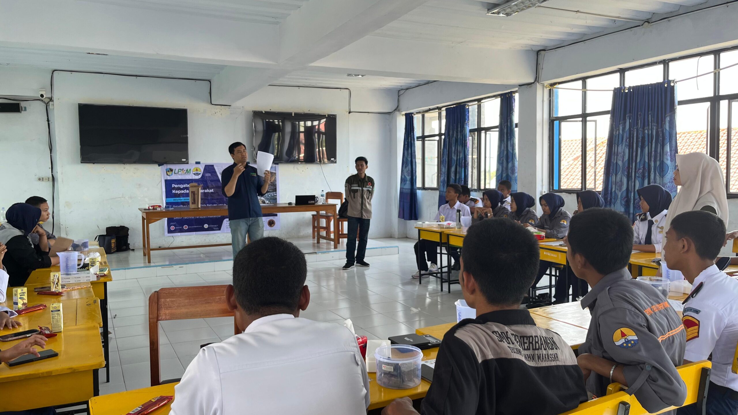 Pengetahuan mengenai potensi bencana ini sangat penting sebagai upaya mitigasi terhadap potensi tersebut sehingga edukasi harus dilakukan di tengah masyarakat. Olehnya itu, maka dosen dari Fakultas Teknologi Industri, Universitas Muslim Indonesa saling berkolaborasi dalam mengedukasi Siswa-siswi Jurusan Geologi Pertambangan, SMK Penerbangan Techno Terapan Makassar. Tim dosen terdiri dari tiga orang yang berasal dari dua program studi yang berbeda, yakni Ir. Abdul Salam Munir, S.T., M.T., dan Ir. Muhamad Hardin Wakila, S.T., M.T. dari Program Studi Teknik Pertambangan FTI UMI yang mengedukasi mengenai kondisi geoteknik dan identifikasi batuan, dan Dr. Ir. Nurul Chairany, S.T., M.T., IPM., dari Porgram Studi Teknik Industri UMI yang mengedukasi mengenai manajemen dan penyediaan alat pengujian.