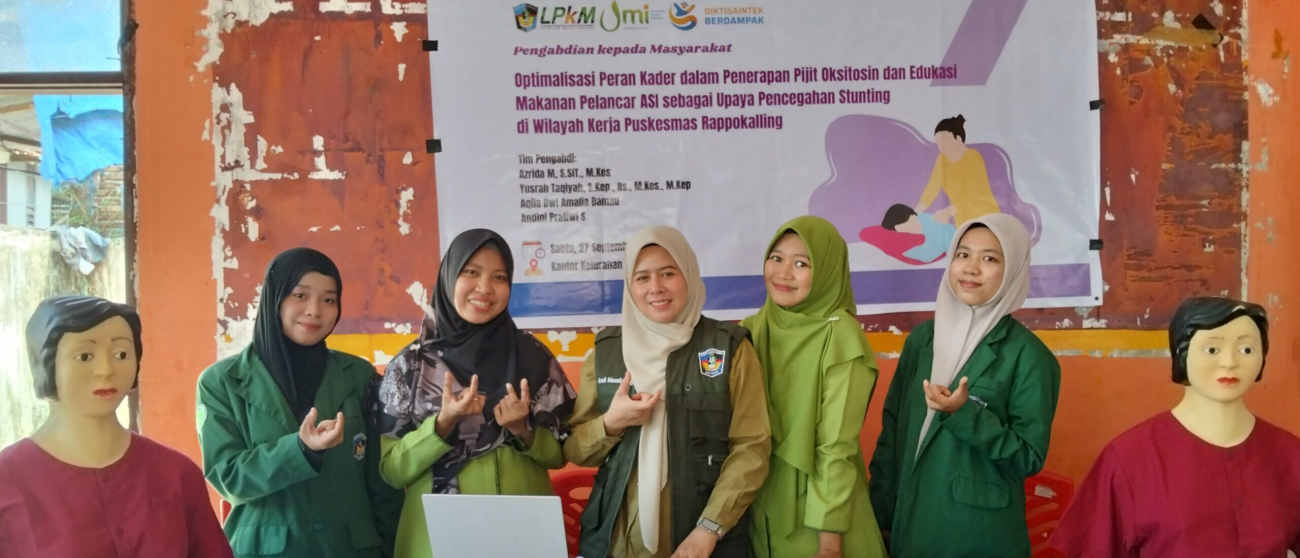 Universitas Muslim Indonesia (UMI) berkolaborasi dengan Kader Kesehatan Rappokalling, mengadakan pelatihan pijit oksitosin dan edukasi makanan pelancar ASI. Kegiatan ini di laksanakan di kantor lurah rappokalling dan di hadiri 25 kader kesehatan Rappokalling.