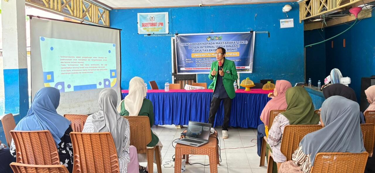 Tim dosen Fakultas Ekonomi dan Bisnis melaksanakan kegiatan Pelatihan Technopreneurship bagi kelompok Ibu PKK Desa Padanglampe, Kabupaten Pangkep. Kegiatan yang dipimpin oleh Subhan, SE., M.Ak dan Dr. Muhammad Fadhil, SE., MM ini bertujuan meningkatkan kemampuan pelaku UMKM dalam memanfaatkan teknologi untuk inovasi produk dan pemasaran digital, sehingga mampu bersaing di tengah perkembangan revolusi industri 5.0.