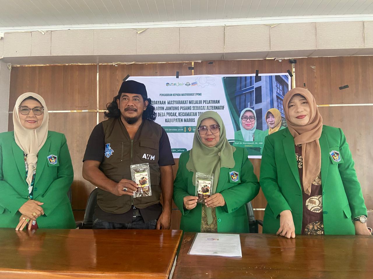 Maros, 3 Oktober 2025 – Inovasi kembali hadir dari Desa Pucak, Kecamatan Tompobulu, Kabupaten Maros. Melalui kegiatan “Pemberdayaan Masyarakat Melalui Pelatihan Pembuatan Abon Jantung Pisang sebagai Alternatif Usaha”, warga desa, khususnya kelompok UKM di Dusun Pucak, tampak antusias mengikuti pelatihan yang diselenggarakan oleh tim dosen Fakultas Ekonomi dan Bisnis Universitas Muslim Indonesia melalui Lembaga Pengabdian Kepada Masyarakat (LPkM).