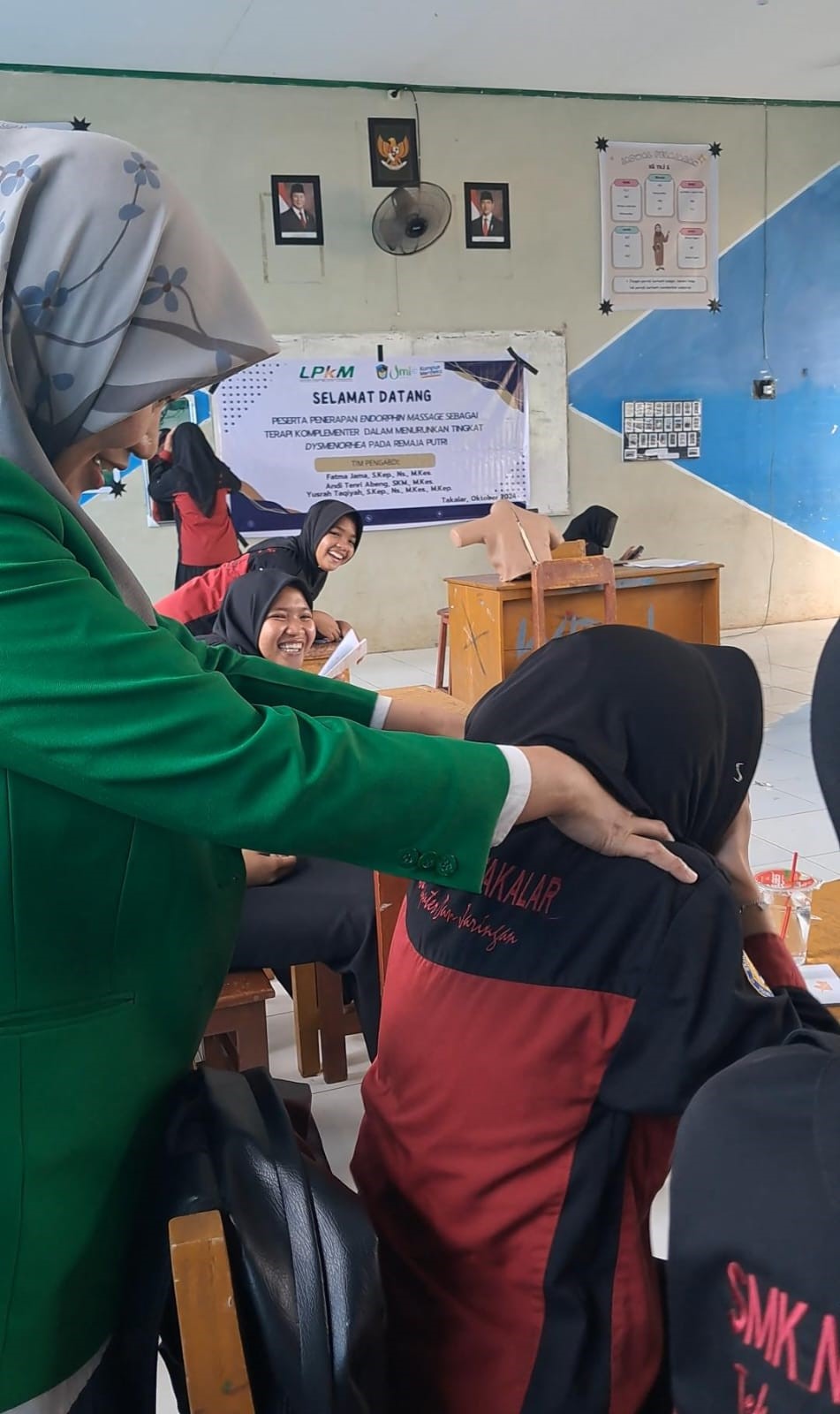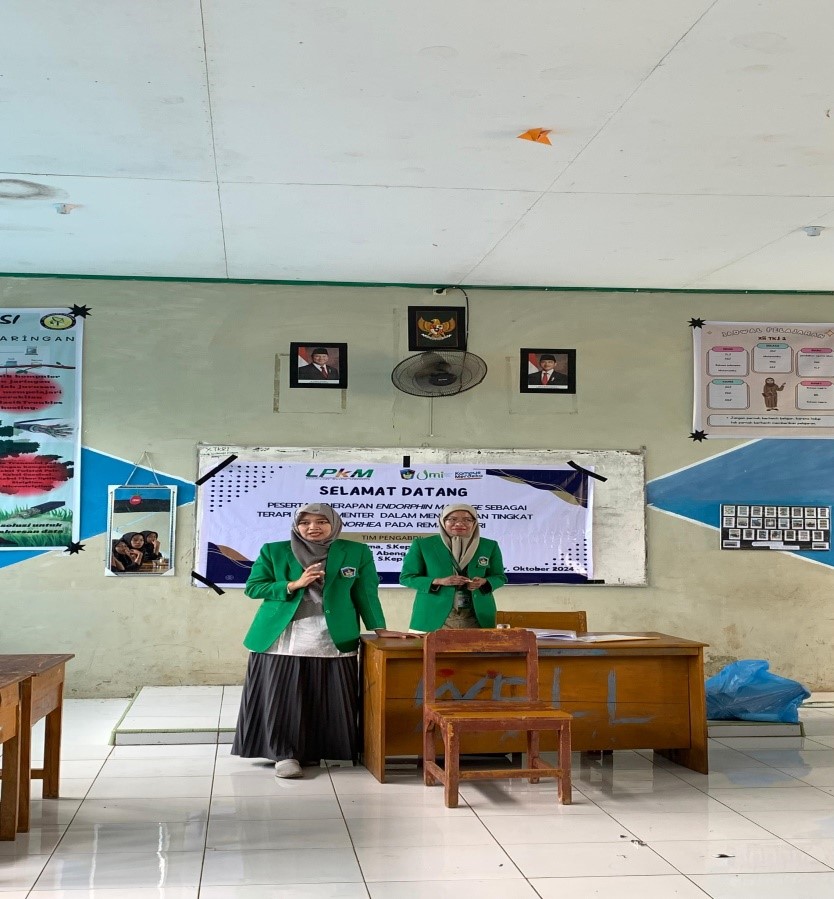 Tim Dosen  FKM UMI Lakukan Pengabdian Kepada Masyarakat terkait Penerapan Endorphin Massage Sebagai Terapi Komplementer Dalam Menurunkan Tingkat Dysmenorhea Pada Remaja Putri. PkM Internal ini berlokasi di  UPT SMKN 6 Takalar Kab.Takalar  pada hari Kamis 17 Oktober 2024.