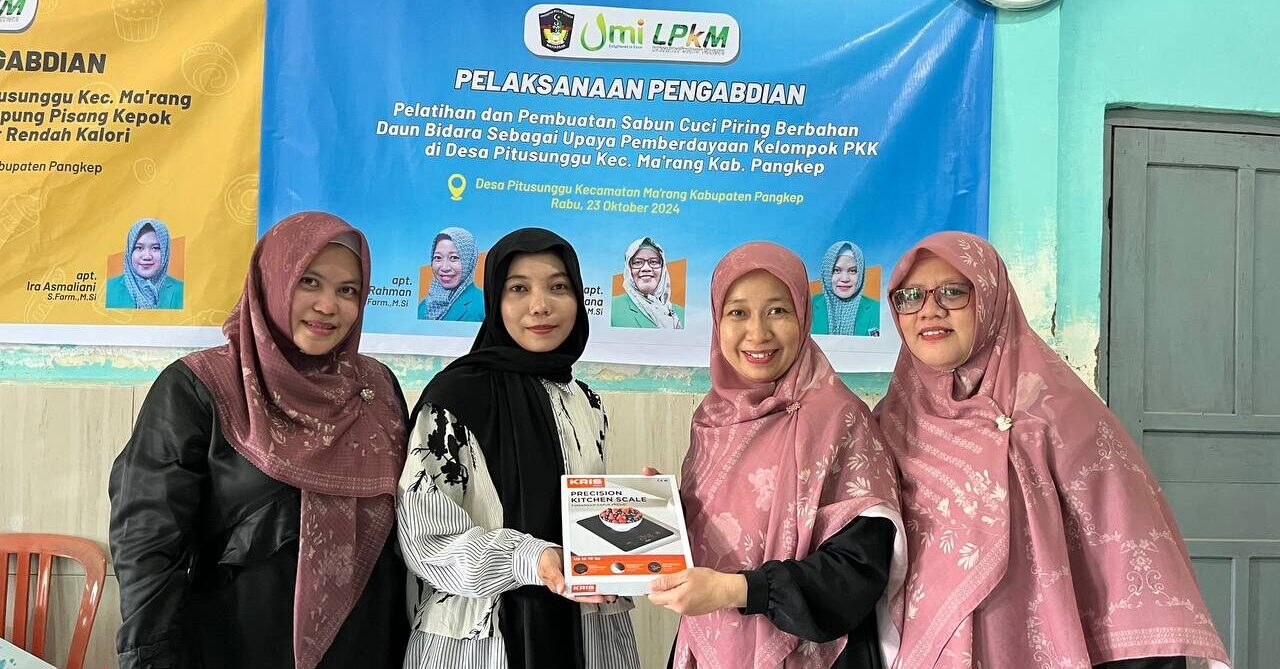 Dosen Fakultas Farmasi Universitas Muslim Indonesia (UMI) Makassar melakukan pengabdian kepada masyarakat di Kabupaten Pangkep tepatnya di Desa Pitusunggu Kecamatan Ma`rang. Tim dosen pengabdi LPKM ini terdiri dari tiga orang, yang diketuai oleh apt. Safriani Rahman, S.Farm., M.Si, dengan anggota apt. Fitriana, S.Farm., M.Si dan apt. Vina Purnamasari, S.Farm., M.Sc, serta melibatkan dua orang mahasiswa Farmasi UMI.