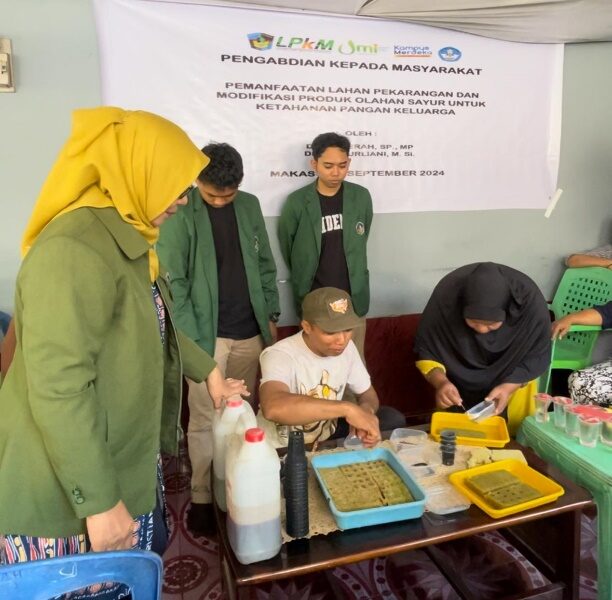 Dosen Fakultas Pertanian Universitas Muslim Indonesia (UMI) Makassar melalui Lembaga Pengabdian kepada Masyarakat (LPkM) Universitas Muslim Indonesia, melaksanakan kegiatan Program Kemitraan Masyarakat (PKM) pada Kelompok Wanita ”Marannu” pada Sabtu, 30 November 2024. Kegiatan ini ketuanya ibu Dr. Suherah, SP., MP dan anggotanya ibu Dr. Ir. Nurliani, MS. serta melibatkan 2 orang mahasiswa Agribisnis.