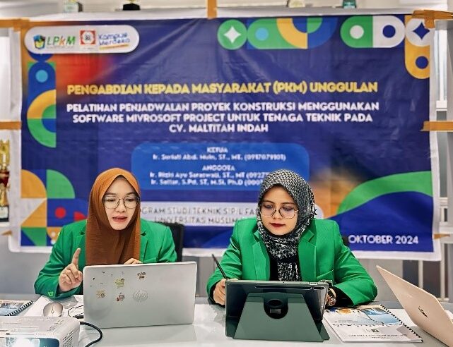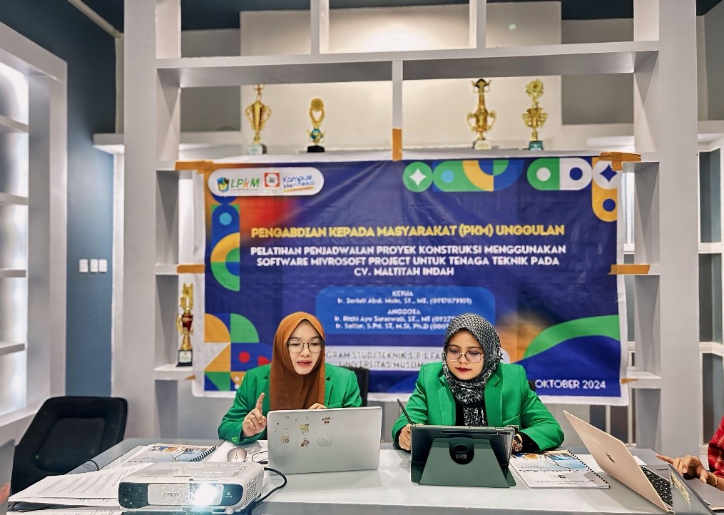 Tim PKM Unggulan UMI melakukan Pelatihan Penjadwalan Proyek Konstruksi menggunakan Software Microsoft Project bagi Tenaga Teknik yang bekerja sama dengan CV. Maltitah Indah